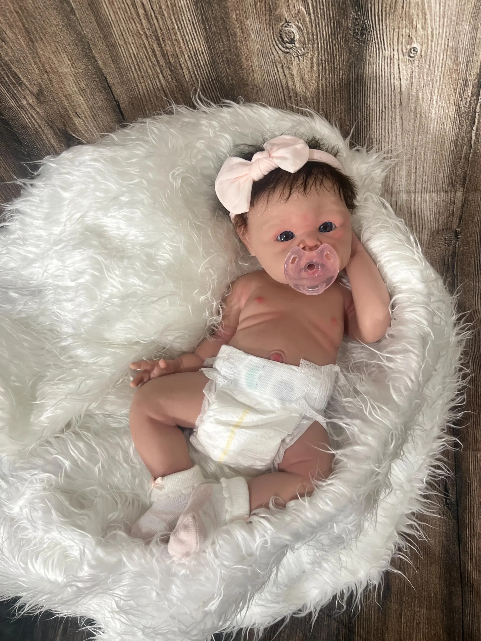 The FULL BODY silicone baby begins as a blank kit from a mass producer and is then transformed through my detailed reborning process. It is painted with high-quality silicone paints and sealed with a superior matting powder. While minor imperfections such as seam lines or mold marks on the head may be present, I strive to minimize them. These "birthmarks" or "soft spots" contribute to each baby's unique character, ensuring no two are identical. Made from 100% economy-grade silicone, which is medical-grade and skin-safe, it offers an authentic feel and appearance. Each baby is accompanied by a diaper, blanket, pacifier, hat/bow, and a complete take-home outfit. For additional photos or inquiries, please message me. Thank you! The baby will be dispatched wearing an outfit chosen by me, which may vary from the one currently shown.